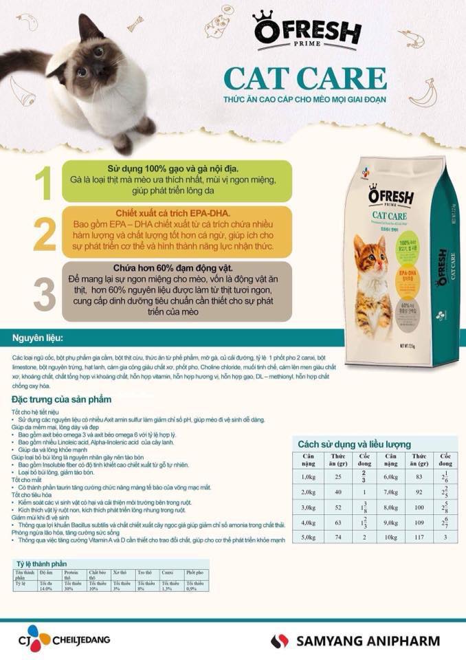 O’fresh Cat Care là sản phẩm thức ăn cao cấp cho mèo phù hợp với mọi giai đoạn phát triển đến từ tập đoàn CJ Hàn Quốc.
